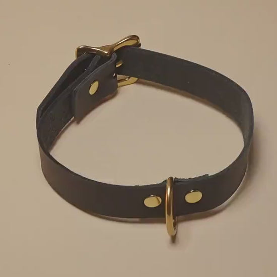 Submissive Day Collar with Solid Brass Hardware in Black Leather